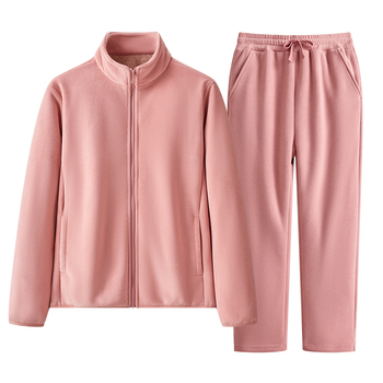 Ollie Women's Super Soft Winter Sports Suit Thickened Two-Piece Set Stand Collar Sweatshirt and Sportswear with Solid Pattern